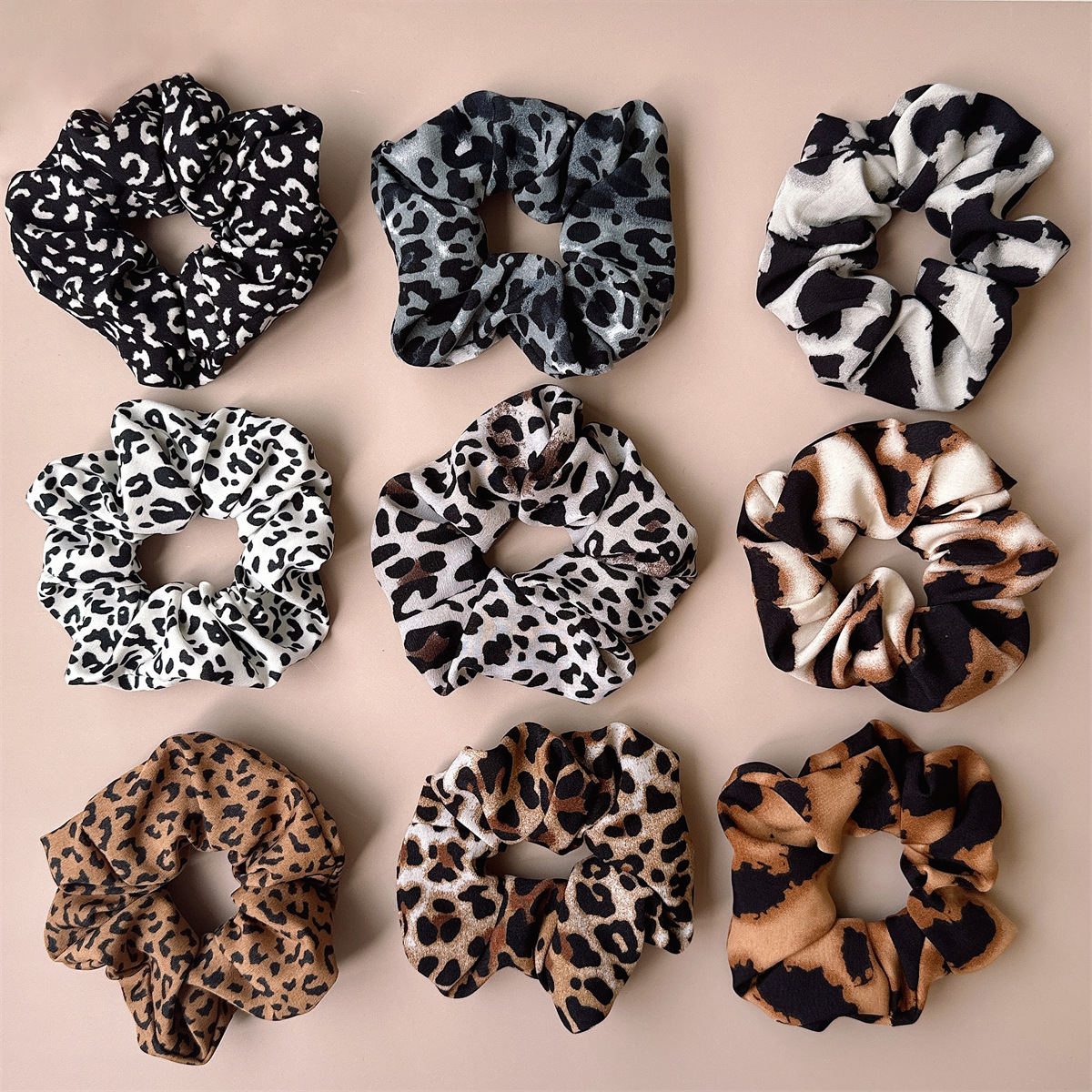国境を越えて人気の高い、ヒョウ柄のリボン付きヘアゴム、高弾性の大きめヘアゴム、女性用ポニーテールヘアゴム、ヘアアクセサリー