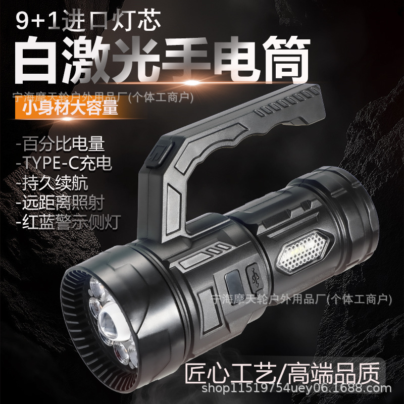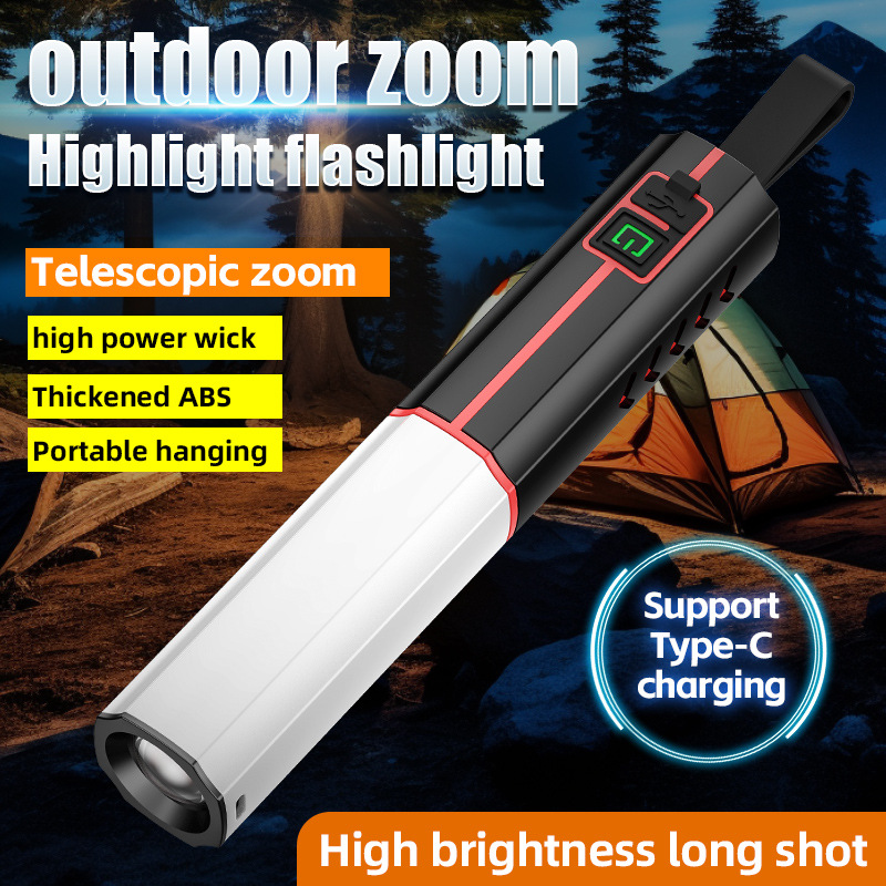 クロスボーダー白レーザー懐中電灯軽量化携帯キャンプ長航続快充緊急屋外伸縮プラスチック懐中電灯