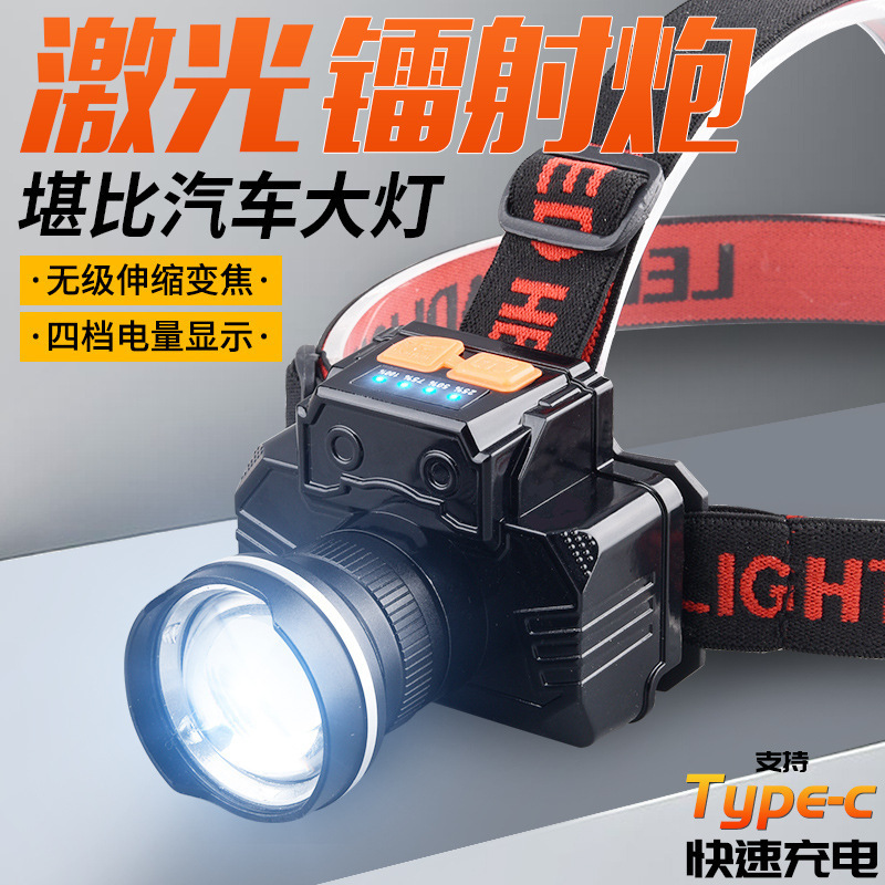 クロスボーダー強力ヘッドライトホワイトレーザー長距離ヘッドライト充電式屋外夜釣り登山長寿命長距離懐中電灯