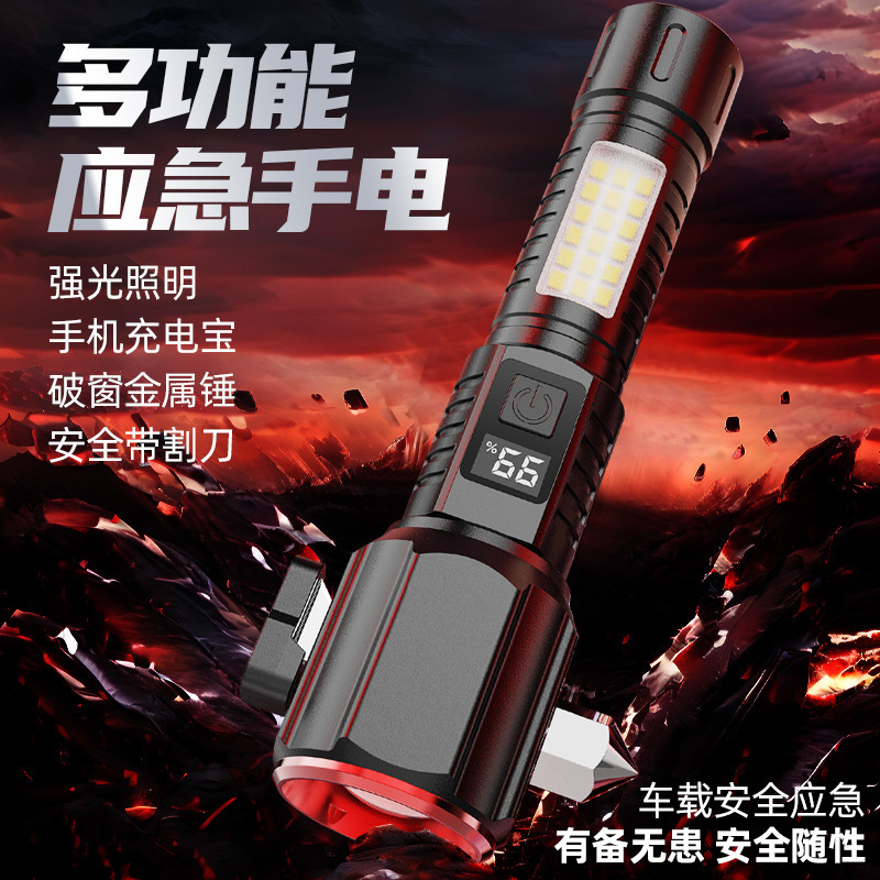 クロスボーダーアルミ合金充電式懐中電灯多機能ハンマー窓破壊緊急予備車ポータブル伸縮ハンマーライト