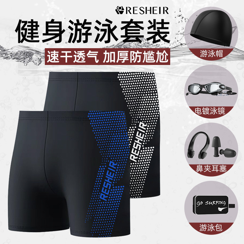 恥ずかしさ防止水泳パンツ、大きいサイズ、速乾性、プロ仕様のボクサー水泳パンツ、温泉男性用水着、水泳ゴーグル、水泳キャップセット、装備