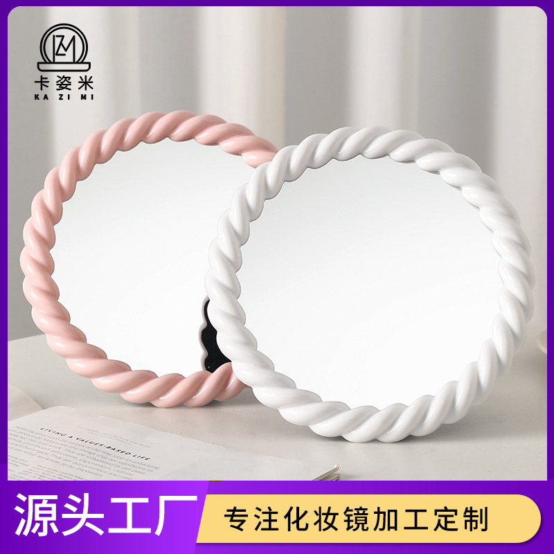 プラスチックかわいいクリーム風化粧鏡円形デスクトップクリーム風オフィス移動鏡化粧鏡