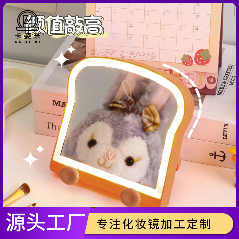 充電式ledトーストパン化粧鏡デスクトップ折りたたみ式ライト付き補光鏡家庭用化粧鏡