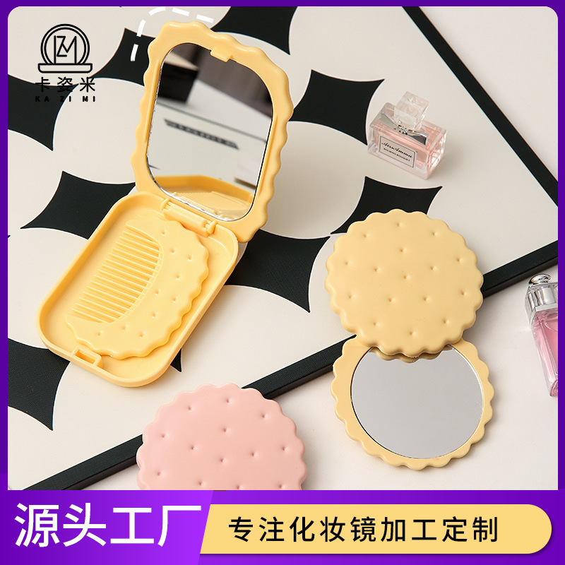 創意的なミニビスケットの形の化粧鏡のかわいい王女は携帯して化粧鏡を洗って丸い鏡のセットを折り畳みます。