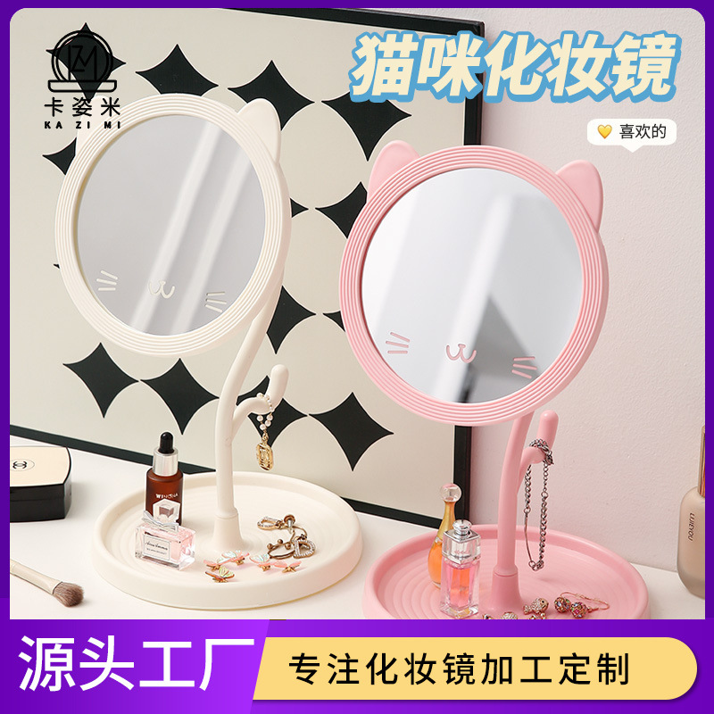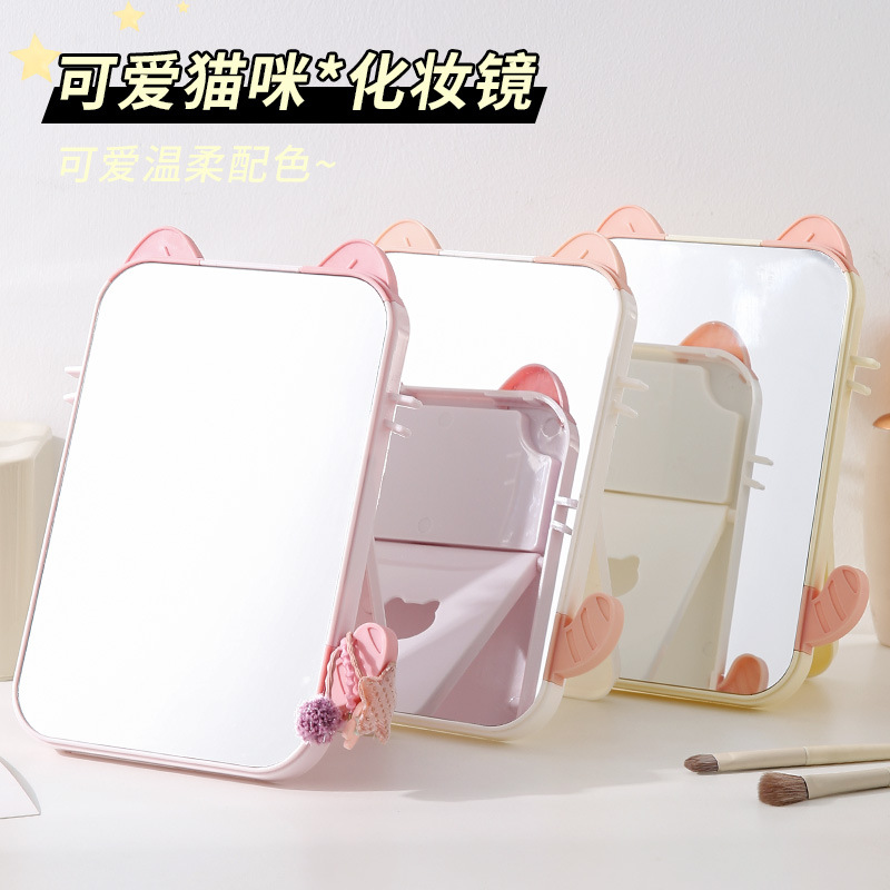 Ins風プラスチック猫台鏡キャンディー色かわいいアニメデスクトップ片面美化粧鏡学生美少女化