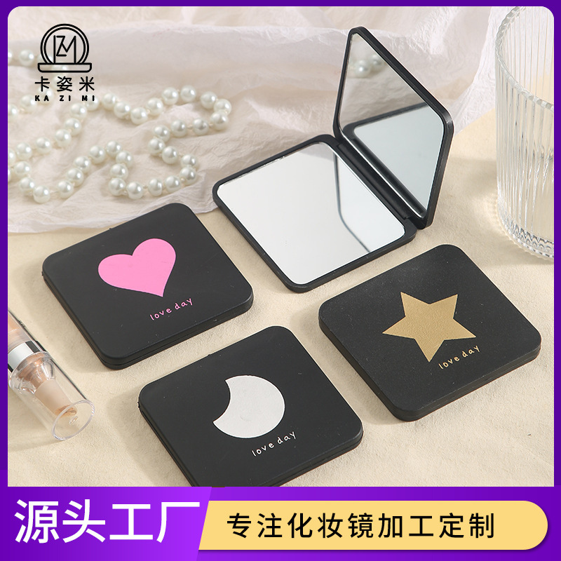 両面折り畳み化粧鏡黒箔押し化粧鏡学生が化粧を直して化粧をする携帯ポケットの四角い鏡