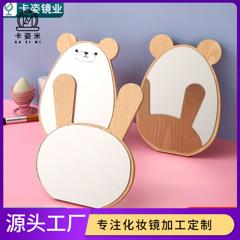 木のかわいい熊の木の鏡の高清の美しい化粧の鏡のデスクトップの漫画の化粧の鏡のデスクトップの寝室の商用の王女の鏡