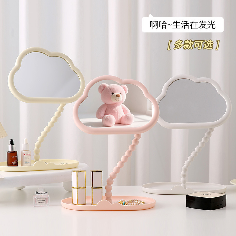 プラスチック雲型ミラー 卓上収納 学生用化粧鏡 クリエイティブ回転式メイクアップミラー プリンセスミラー