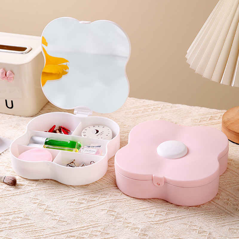 四つ葉のクローバーは化粧鏡を収納しています。学生寮は机の上に置いています。