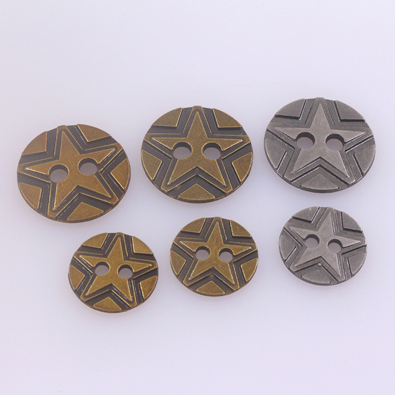 2023新型二眼ボタン合金五角星手縫いシャツのスーツのコートのアクセサリーのボタン