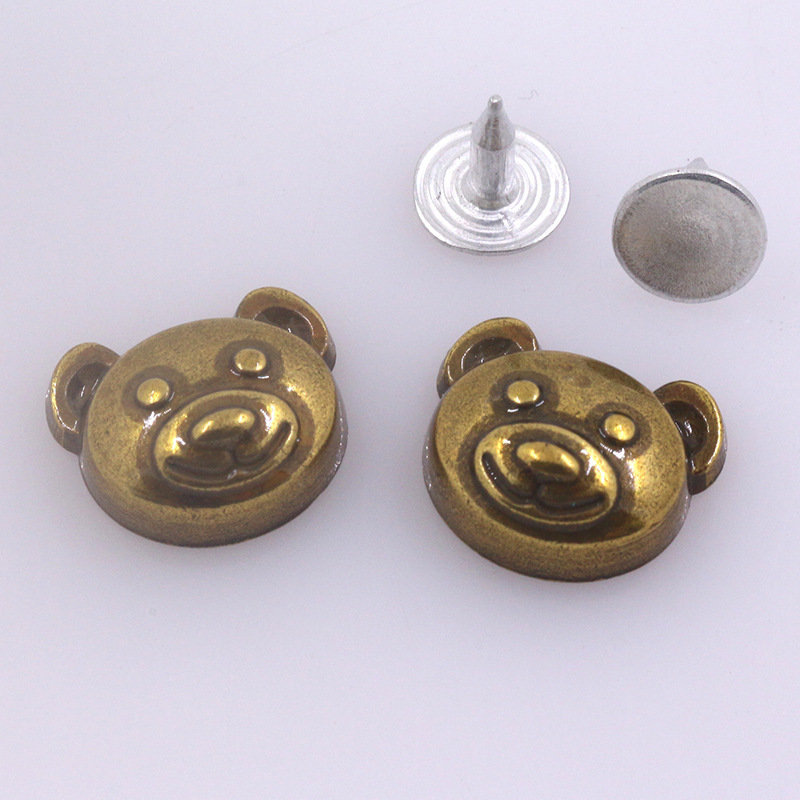 工場直売熊リベット古金色動物打釘部品ケース金物装飾ボタンデニムボタン