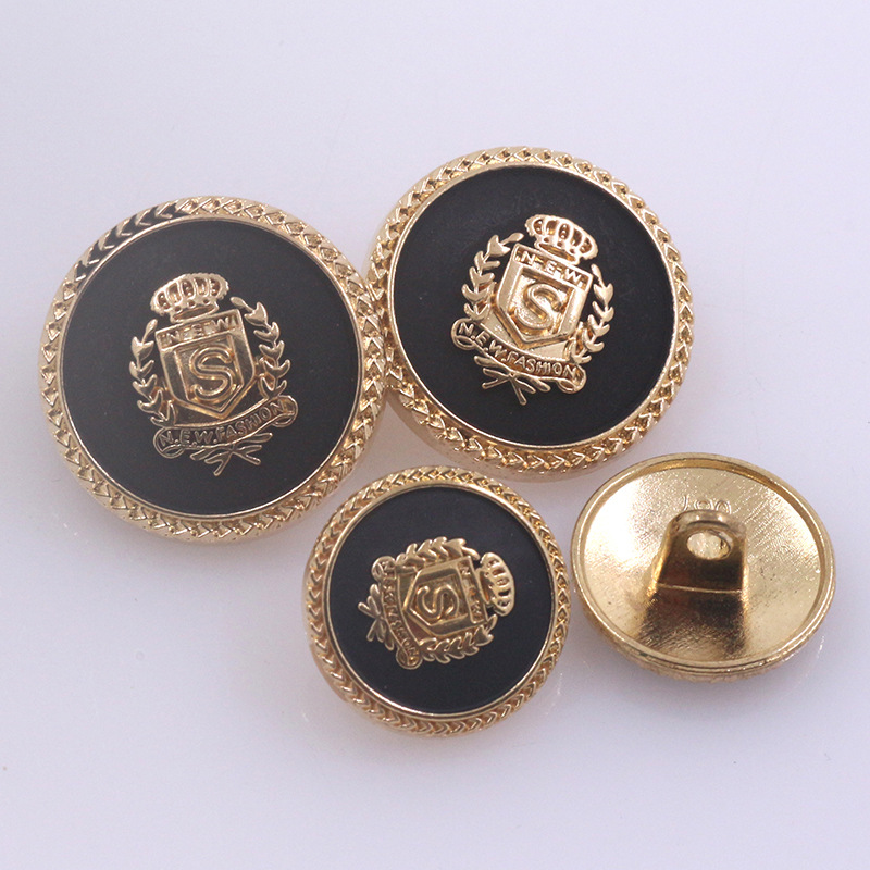 小香風稲穂クラウン手縫いボタン金辺黒金属ボタン英語コートコートコート風衣金属ボタン
