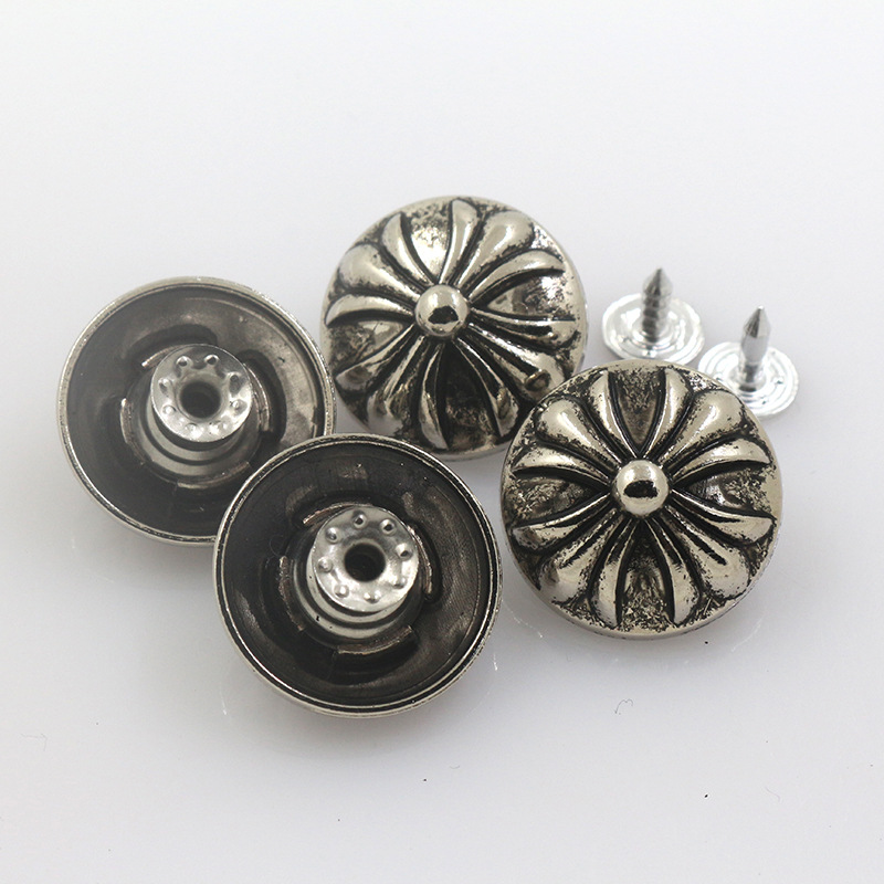 円形四眼金属シャツボタンレトロ凹花コートコートボタン卸売りカフス合金手縫いボタン