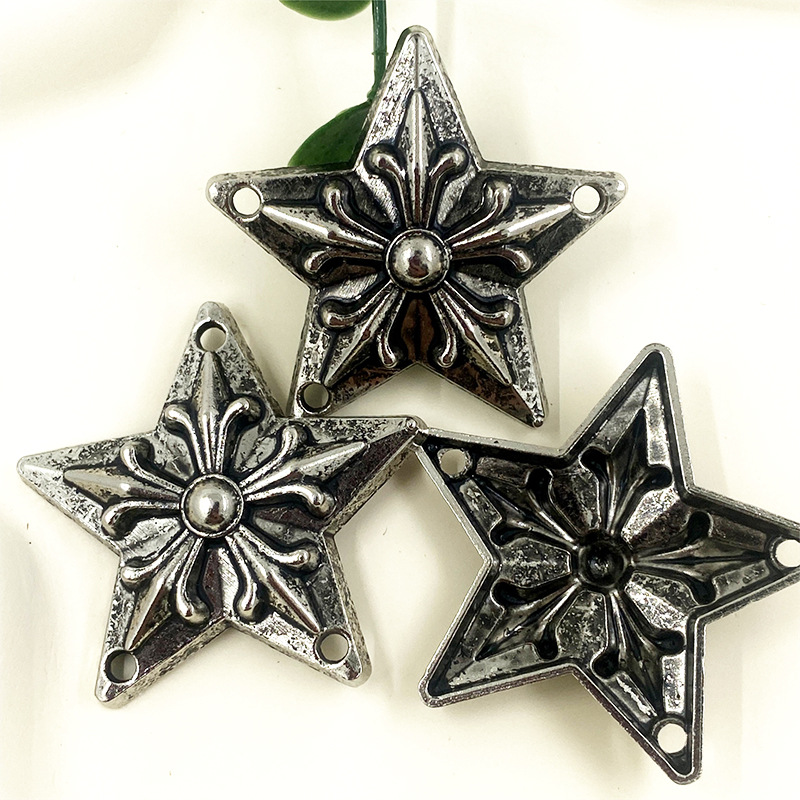 大きいサイズの金属の五角星の縫い目のボタンのレトロな黒油の雪の花の手の縫い目のボタンの服装の靴下の装飾のボタン