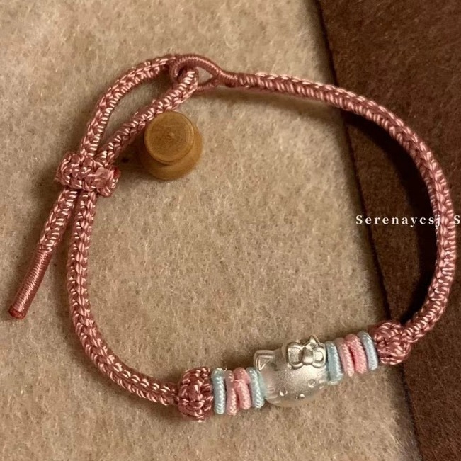 新しいハローキティの編みひもの女性のかわいい少女のピンクのひもの甘い小さい大衆のかわいい学生のブレスレット