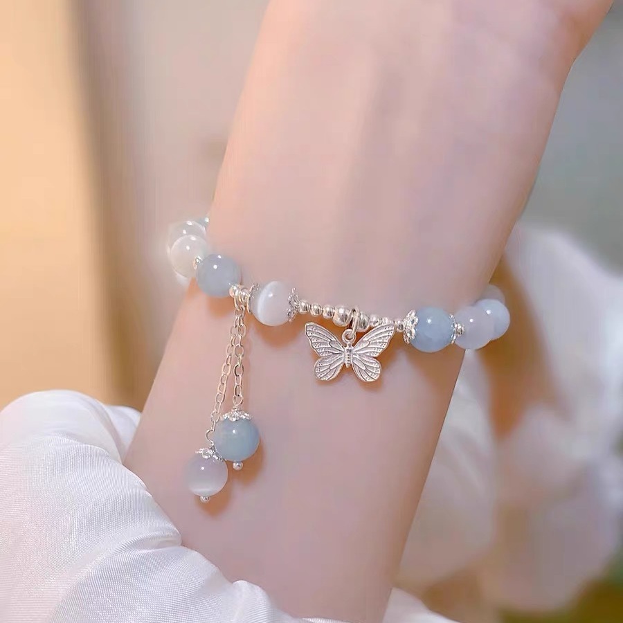 蝶猫眼石ブレスレット女ins小衆デザイン感猫眼石水晶手串親友彼女プレゼント