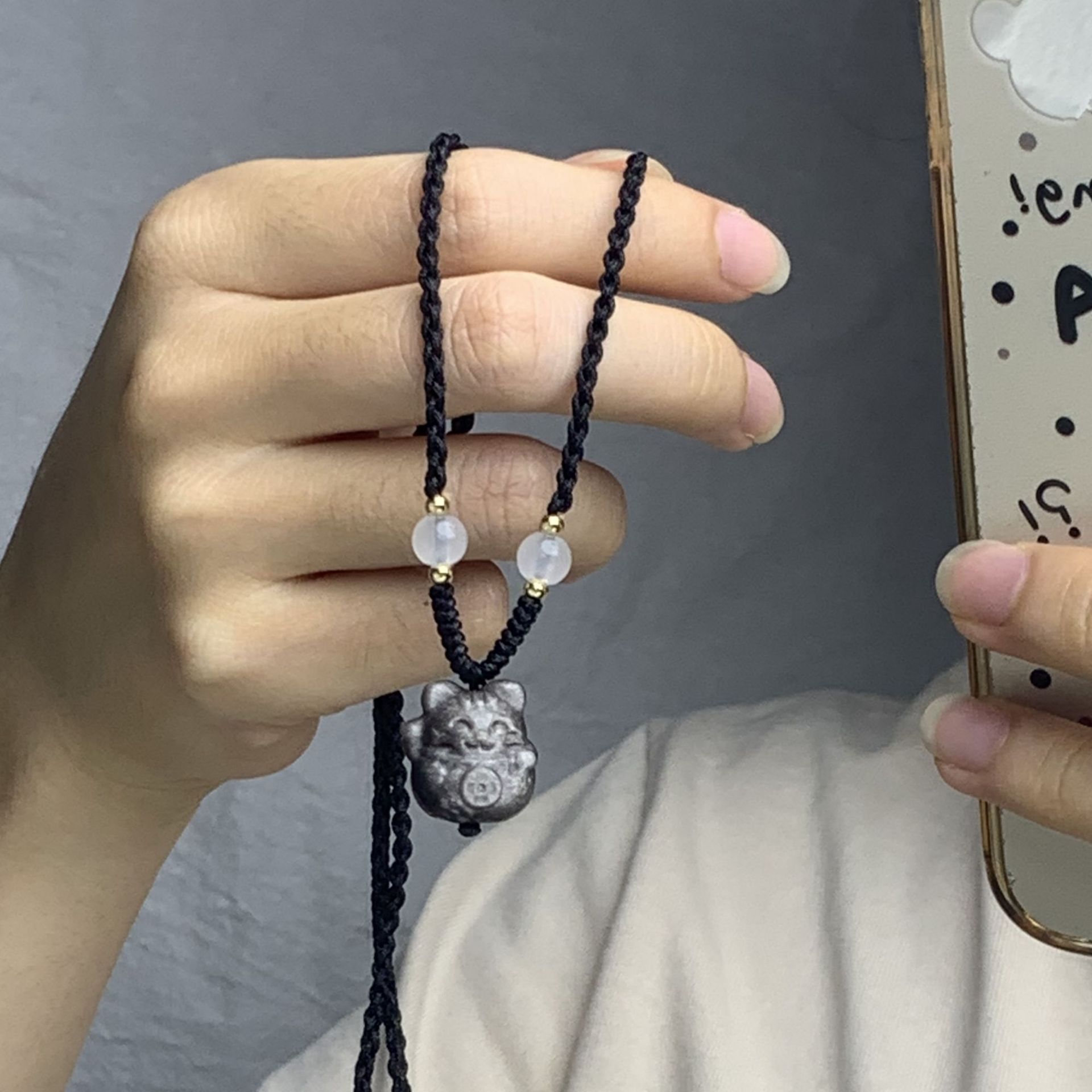 新中国式天然銀曜石招き猫ペンダントネックレス女性大衆シンプル鎖骨鎖男高級感ネックレス潮