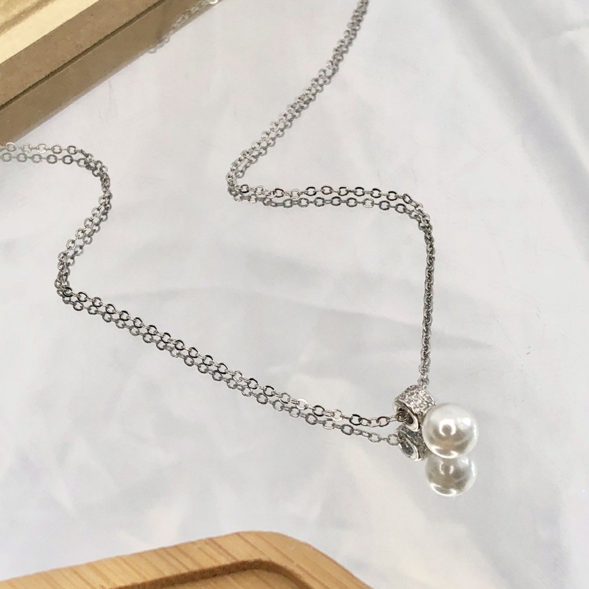 爆金の一つの真珠にダイヤモンドのネックレスを入れます。