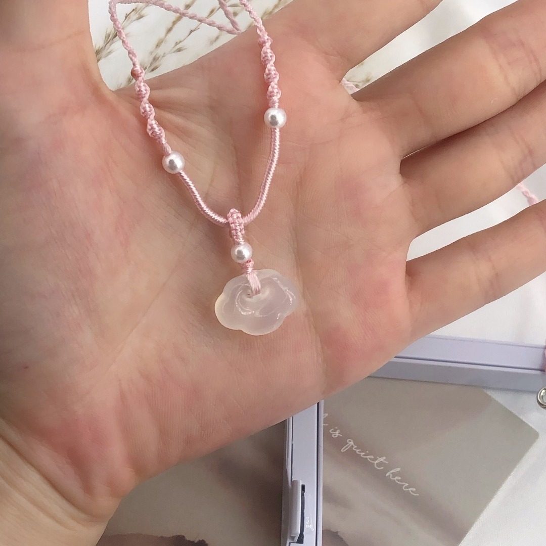 オリジナルの白玉髄長命ロックネックレス女性新中国式祥雲ロックピンク編みネックレスかわいい鎖