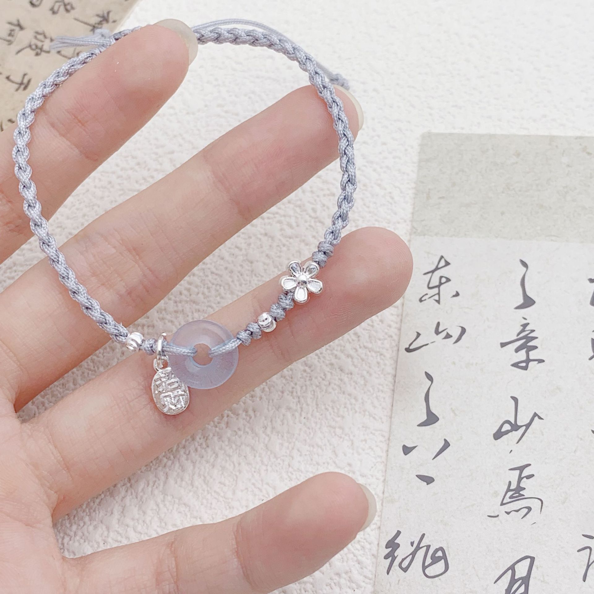 本命年小銀豆紅縄手編み足チェーン女性は新中国式シンプル国潮手足縄男を調節できる