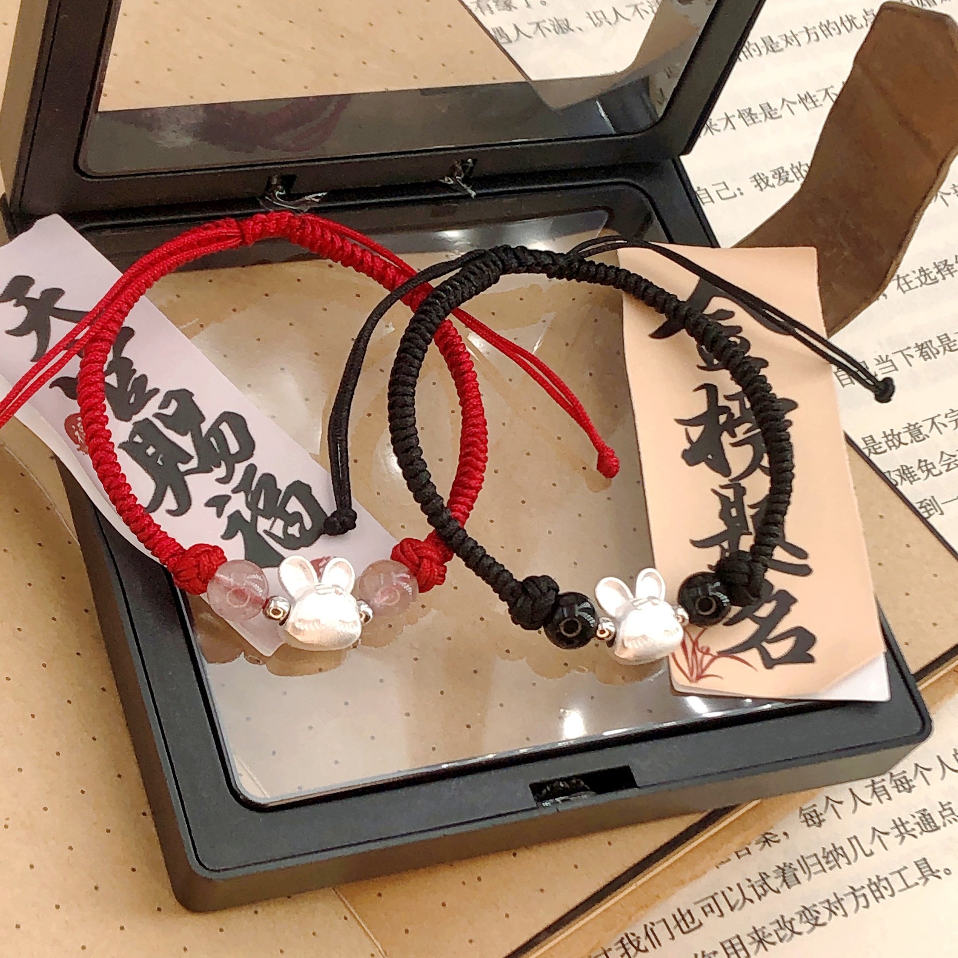 本命年の幸運なウサギのブレスレットのカップルのペアの手作りの赤いロープのバレンタインデーのプレゼントは対象に送ります。