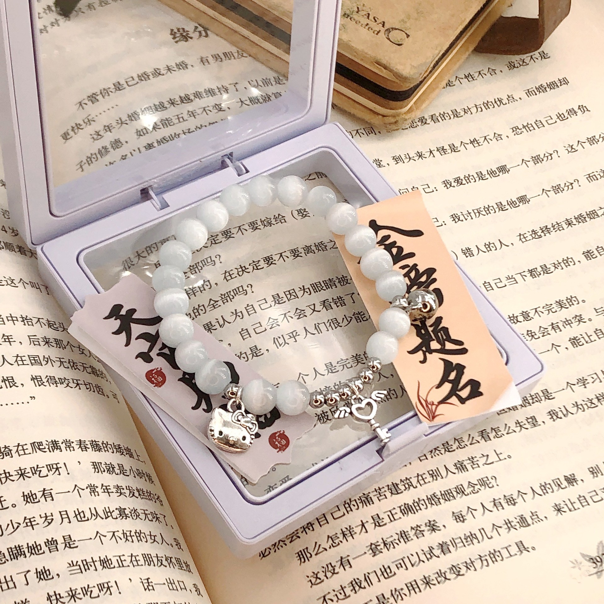 震え音が爆発したかわいいハローキティ猫のブレスレットdiyビーズリング猫の目の石鈴愛カップルの親友