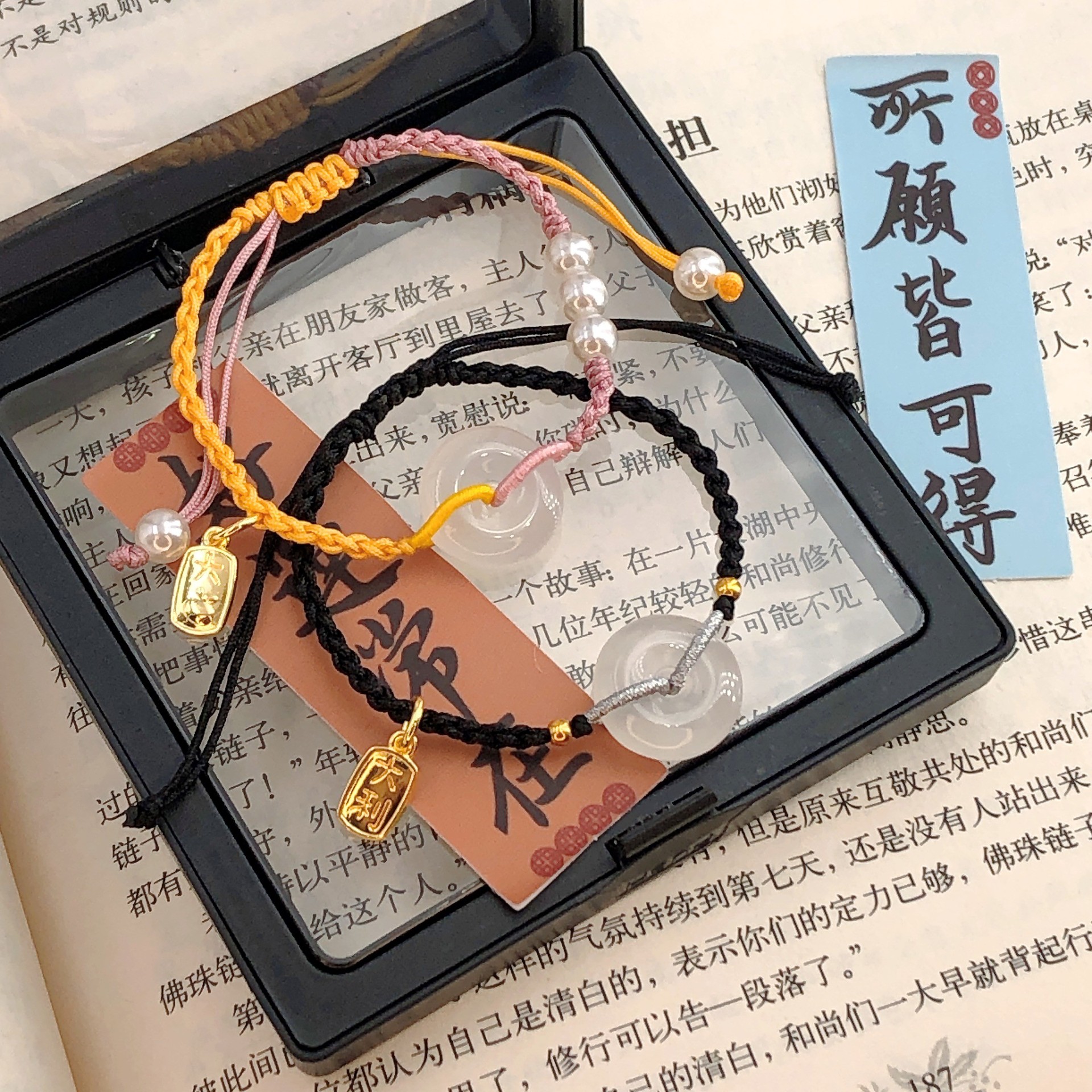 白玉髄平安ボタン福牌真珠カップルブレスレット手編み手縄男女シンプルカップル手飾りプレゼント