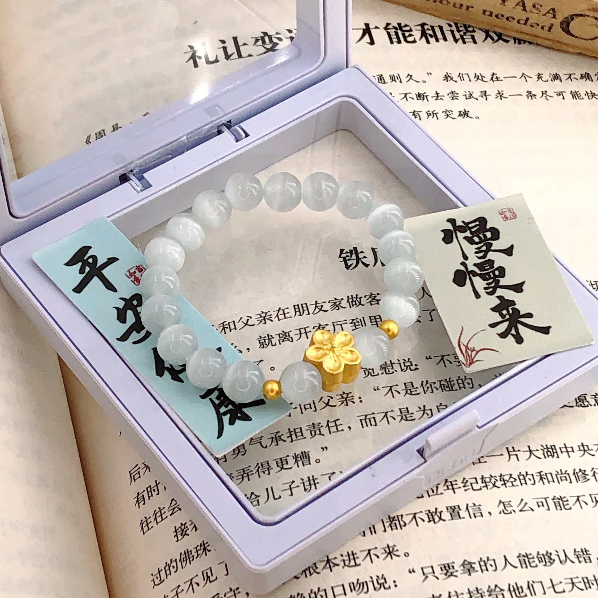 茹穎の小さい桃の花の猫の目の石のブレスレットの女子学生の森は色を落とさないで手をつないで娘の蜜の贈り物をプレゼントします。
