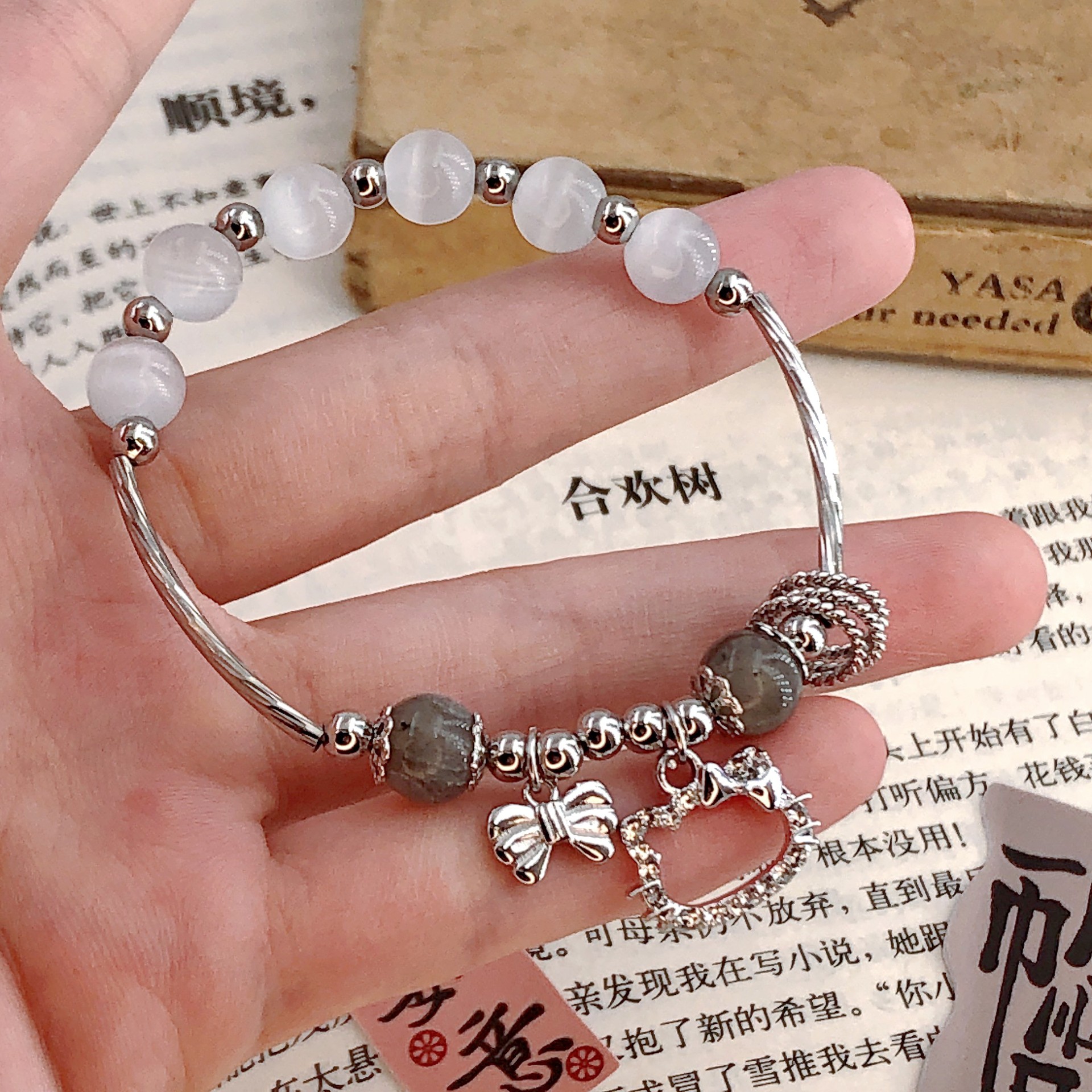 Kitty猫蝶結び猫眼石ブレスレット女ins小衆デザインシンプルなカップル学生手串潮