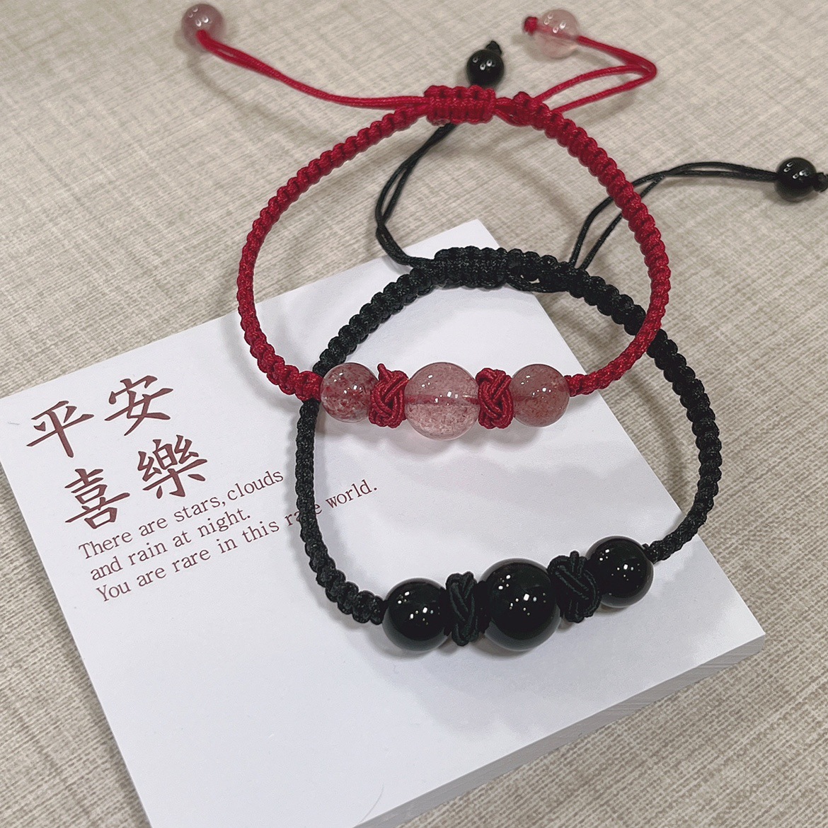 茹穎天然いちご晶黒曜石水晶ブレスレット女性編み手綱カップルの親友森系転運珠