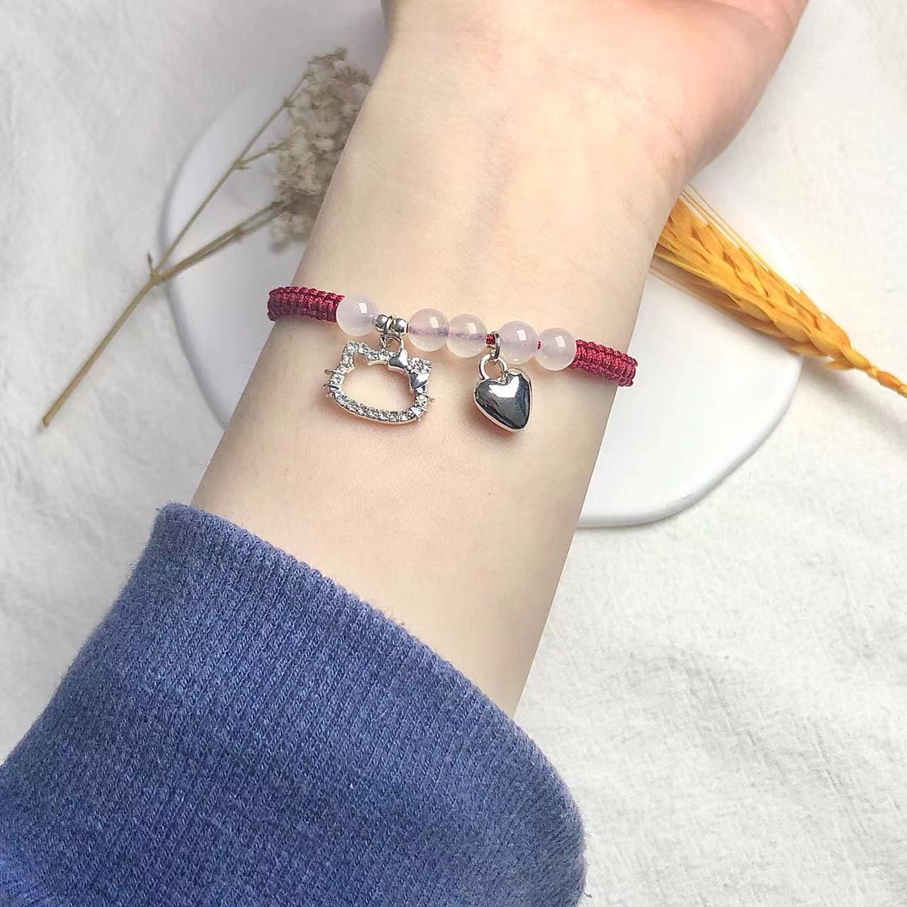 茹穎kt猫愛瑪瑙編み手綱カップル男女学生シンプル気質ブレスレット黒赤手綱