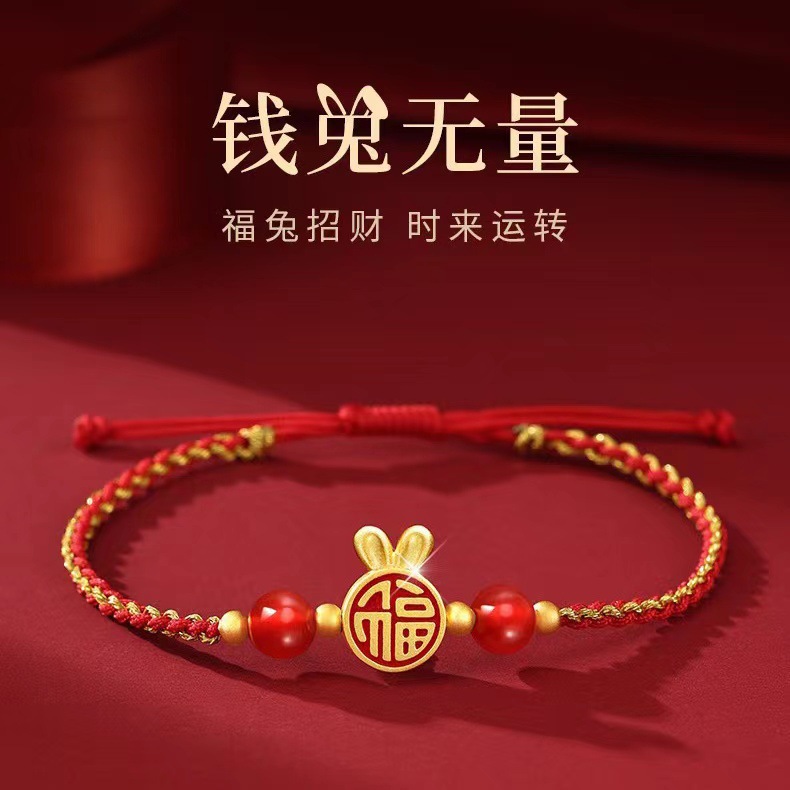 茹穎国潮兎年福牌兎本命年紅縄女紅瑪瑙手織りアクセサリー2023