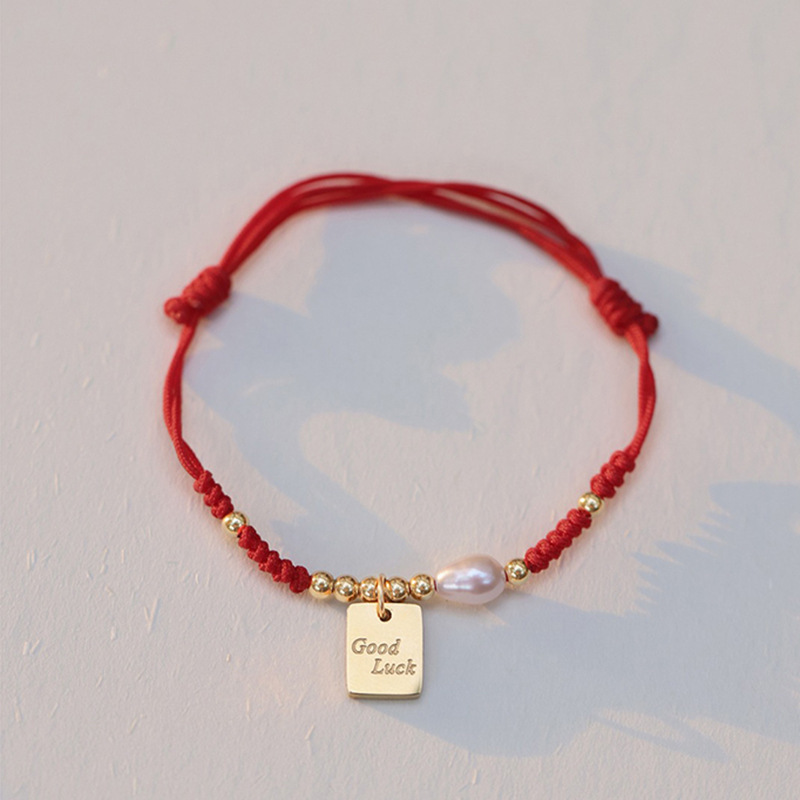 真珠のブレスレットの女性の本命年の回転の玉は手で赤い縄の幸運な縄を編んで娘の友達の蜜の誕生日のプレゼントを送ります。