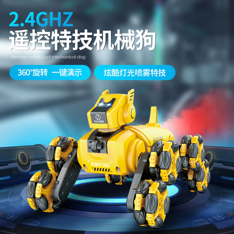新型ロボット犬玩具八輪特技機械犬子供ロボット電子ペット電動噴霧リモコンカー