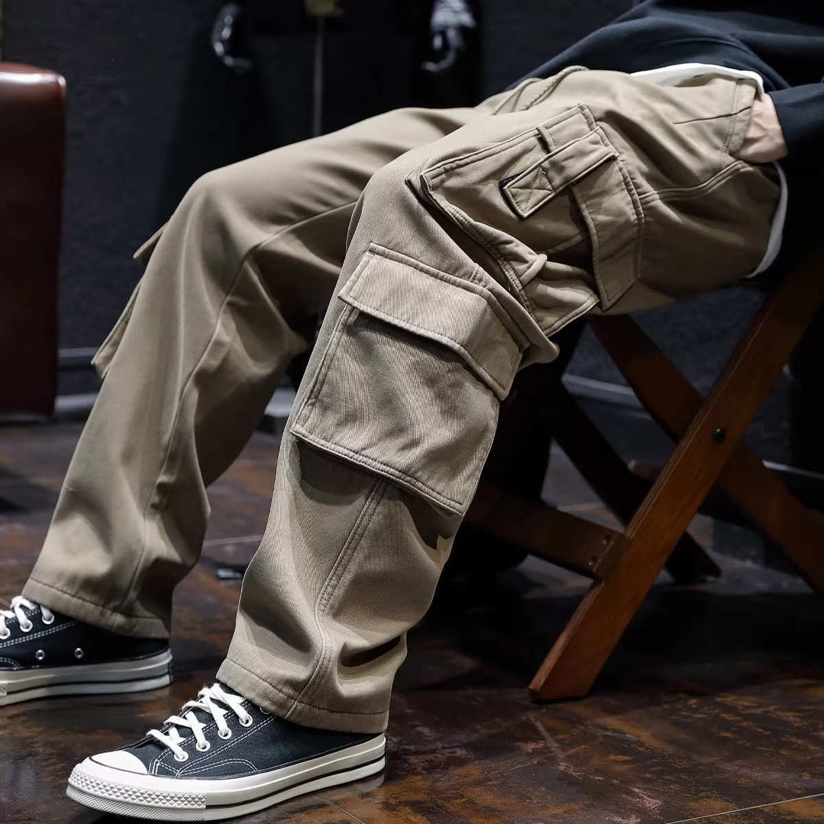 大きいサイズのメンズオーバーオールメンズストレート春秋ルーズトレンドマルチポケットパンツアメリカンレトロカジュアルパンツ