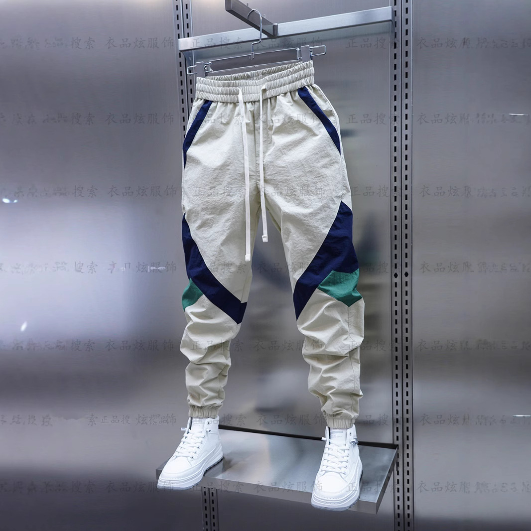 メンズ春秋薄手速乾パンツ、トレンドスリムフィットパッチワーク、トレンドブランドメンズ9点パンツ、おしゃれスリムフィットレギンス卸売