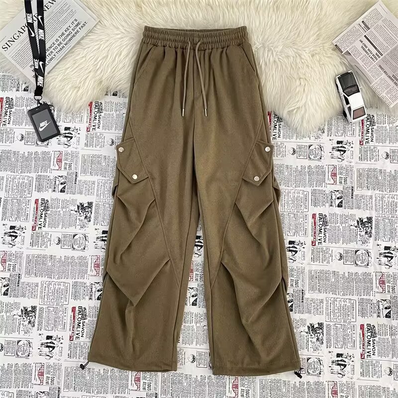 アメリカン迷彩カーゴパンツ女性の夏のストリートレトロルーズワイドレッグパンツクリーンフィットトレンディな多用途カジュアルパンツ