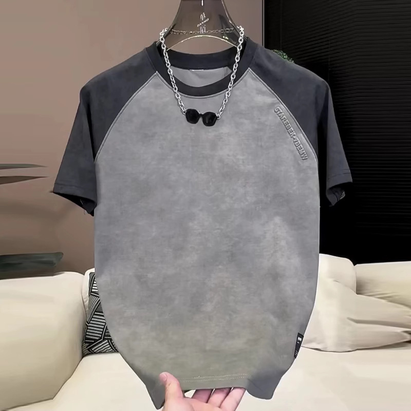 夏の新作半袖Tシャツメンズ薄手アメリカンハーフスリーブトレンドブランドタイダイダメージ加工ルーズカジュアルTシャツ男性用