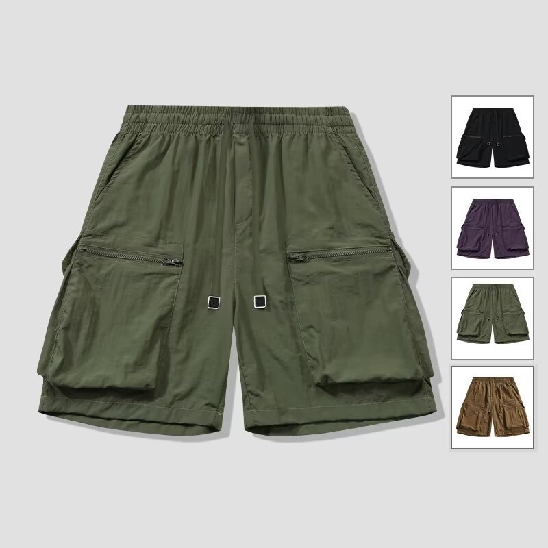 夏用の男性と女性用のカーゴショーツ、薄くてゆったりしていて通気性のあるアメリカン大きいサイズのアウトドアカジュアル大きなポケットアイスシルク5点パンツ