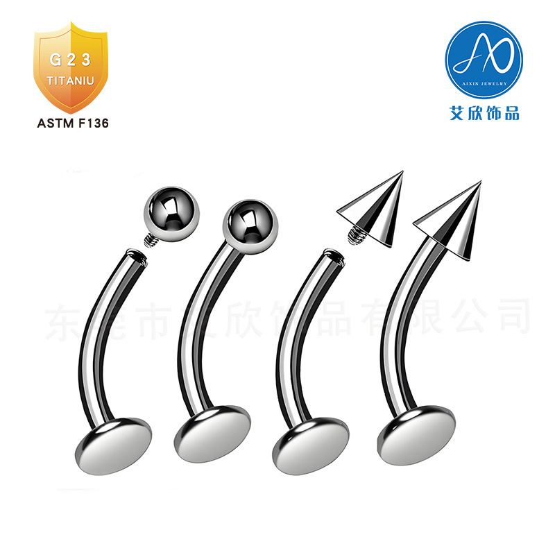G23チタン-チタン合金内歯ダブルヘッド眉钉舌钉乳钉曲げ棒ボール穿刺アクセサリー工场ソース卸売