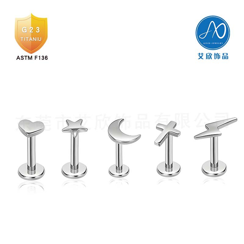 G23チタン合金月星愛稲妻十字架めねじ唇釘ピアスF136アレルギー防止アクセサリー