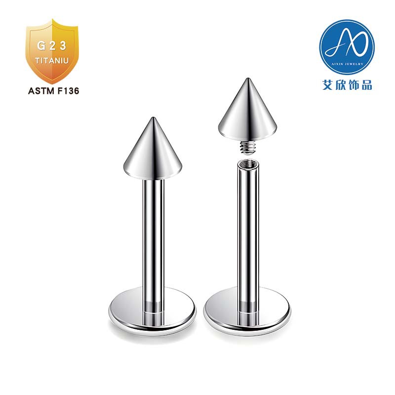 G23チタン外歯唇釘悪魔釘先錐球F136チタン合金人体穿刺唇釘耳骨釘