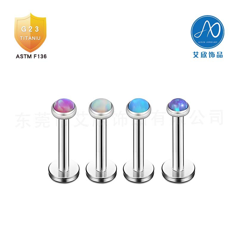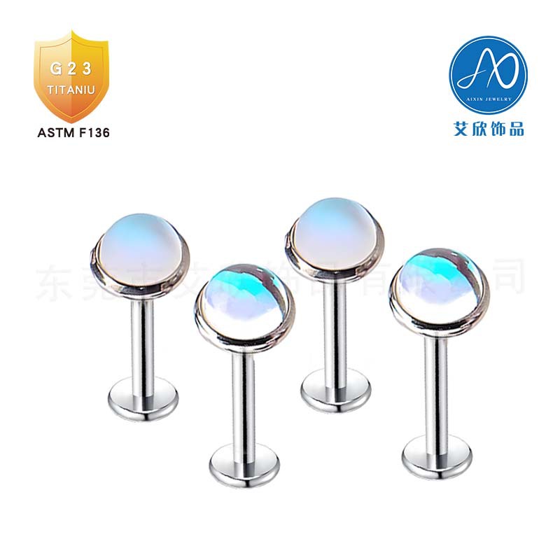 F136チタン包み月明かり石フロストAB舌釘耳骨釘ピアスG23チタン合金穿刺アクセサリー唇釘