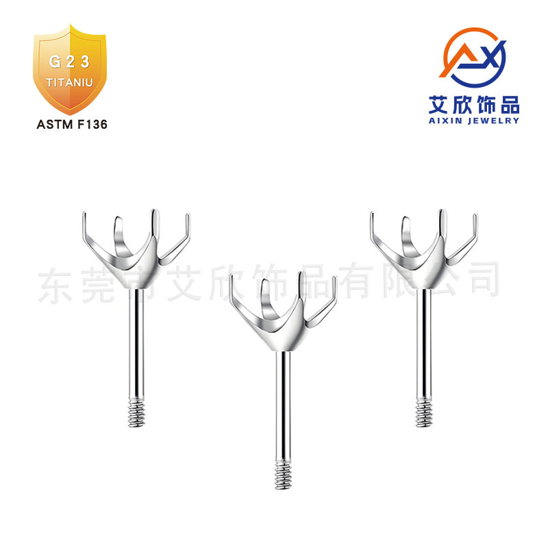 F136チタン三爪空托澳宝爪托耳骨釘唇釘空托g 23チタン合金人体穿刺アクセサリー爪