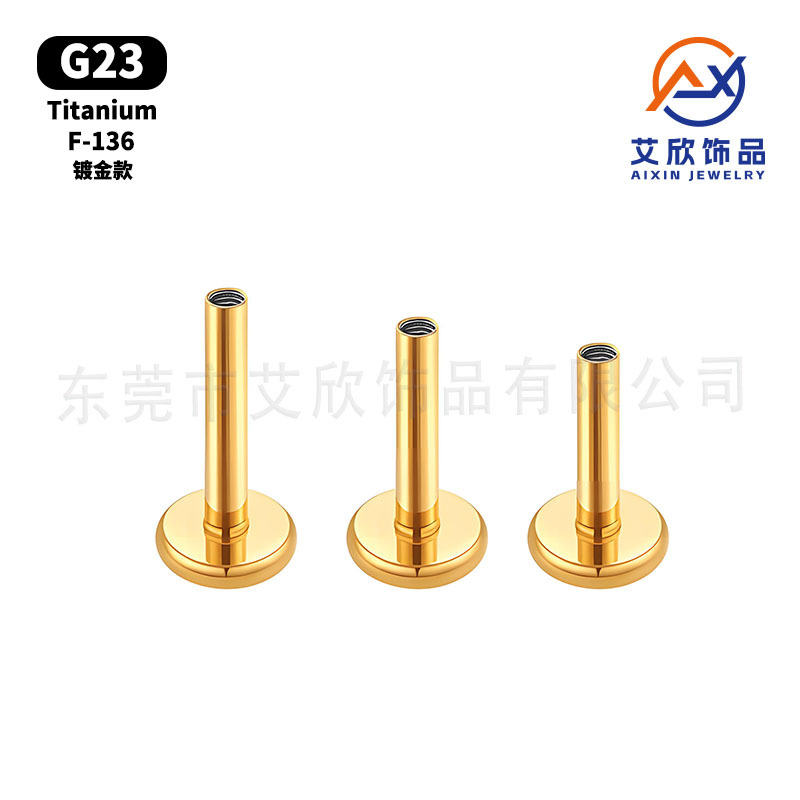 スポット G23 ジュエリーアクセサリー雌ねじ耳骨ネジ金メッキ耳ネジ平底ロッド F136 チタン合金リップネジベース