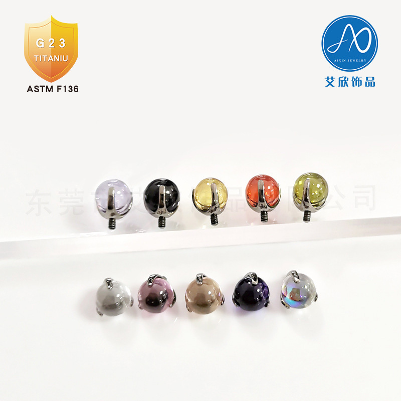 G23チタン三爪胚球ジルコン円珠舌釘唇釘ピアス部品F136チタン合金DIY穿刺アクセサリー