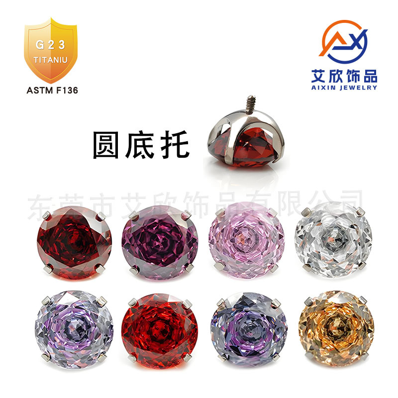 チタン合金イヤリング、丸底ローズカットリップネイル、ジルコン雌ねじイヤリング、F136ボディピアスジュエリー