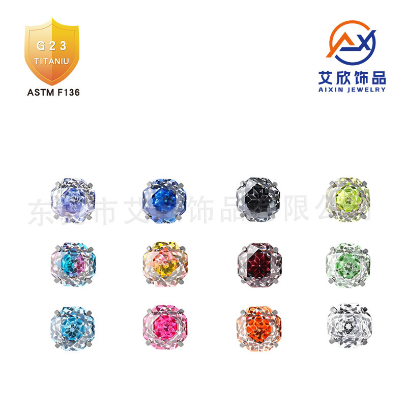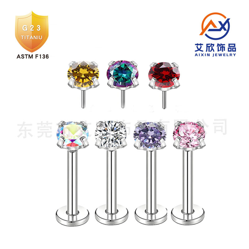 F136 医療用チタン合金イヤースタッド、ジルコンピン、平底耳骨、蝸牛ネジ、Huazi 耳ピアス、リップネジ、耳骨ネジ