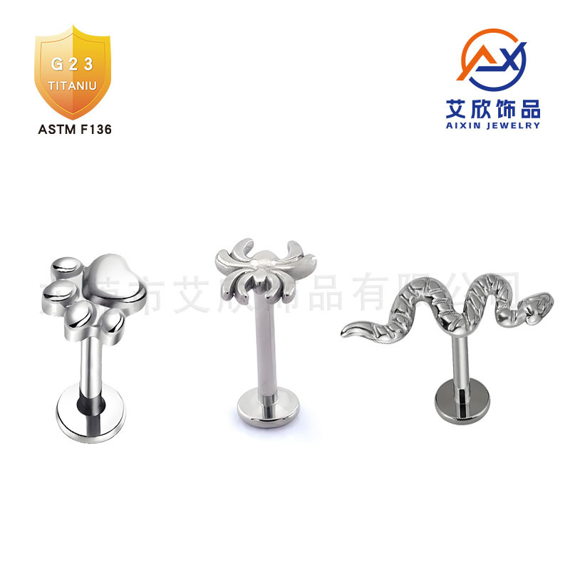F136 チタン合金イヤリングジュエリー雌ねじロッド G23 チタンスパイダースネーククマの足リップネジピアス交換ヘッド