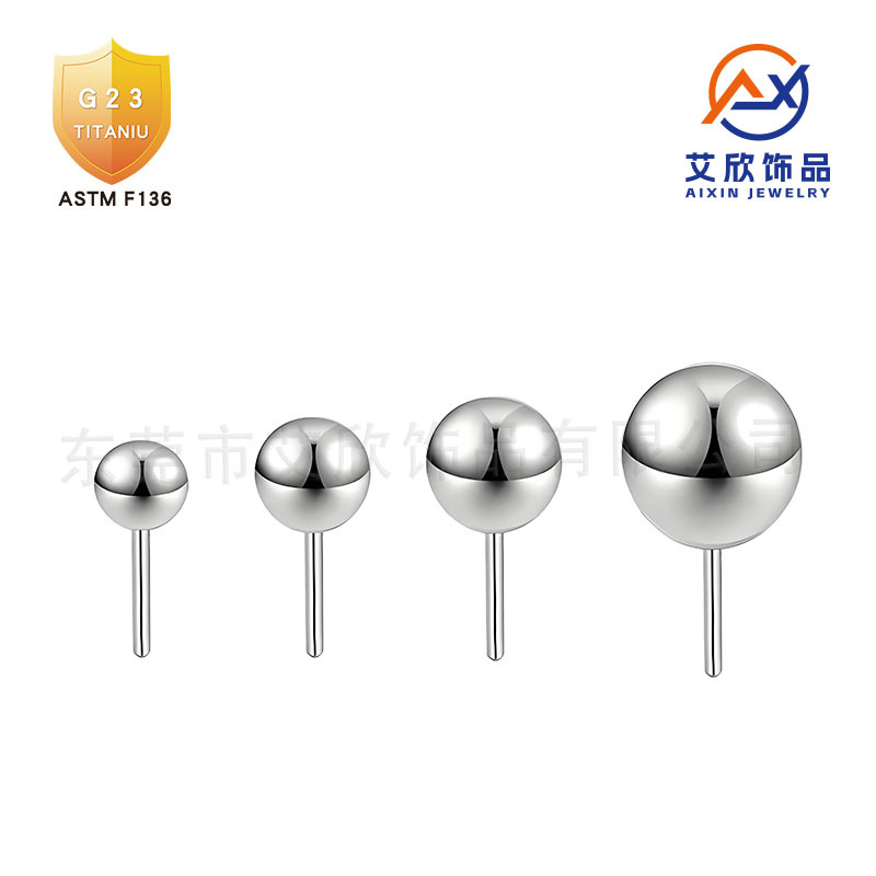 クロスボーダーチタン合金ピンラウンドボール耳骨ネイルリップネイル平底ストレートピアス F136 チタン低刺激性ピアスジュエリー